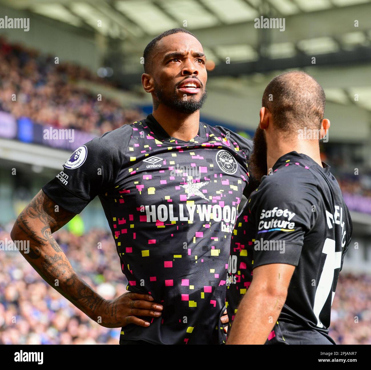 Brighton Uk 01st Apr 2023 Ivan Toney Of Brentford Looks To The Brighton Fans As He Celebrates His Goal Making The Score 1 2 During The Premier League Match Between Brighton Hove