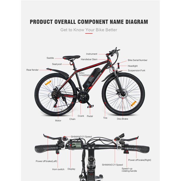 Samebike Sy26 26 Inch Electric Bike Mountain Bike For Adults 36v 10ah Removable Battery 350w Powerful Motor Up To 25km H Ebike Electric Bicycles Shimano 7 Speed Gear And Dual Disc Brakes